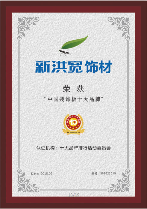 以下是2015年中国装饰板广为人知品牌列表中的卓越公司和品牌: